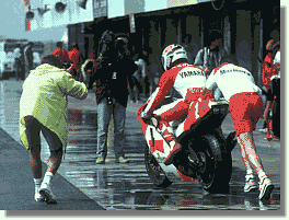 Wayne Rainey. During the last few years of GP500's brilliant age, his superb talent and gentlemanly manners earned him the distinction as a true World Champion. Fast, strong, graceful, yet smart and gentle. His greatness is etched into the hearts of all fans more as fond memories than just records. |